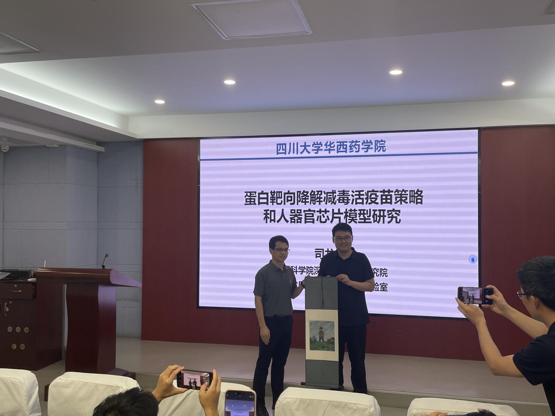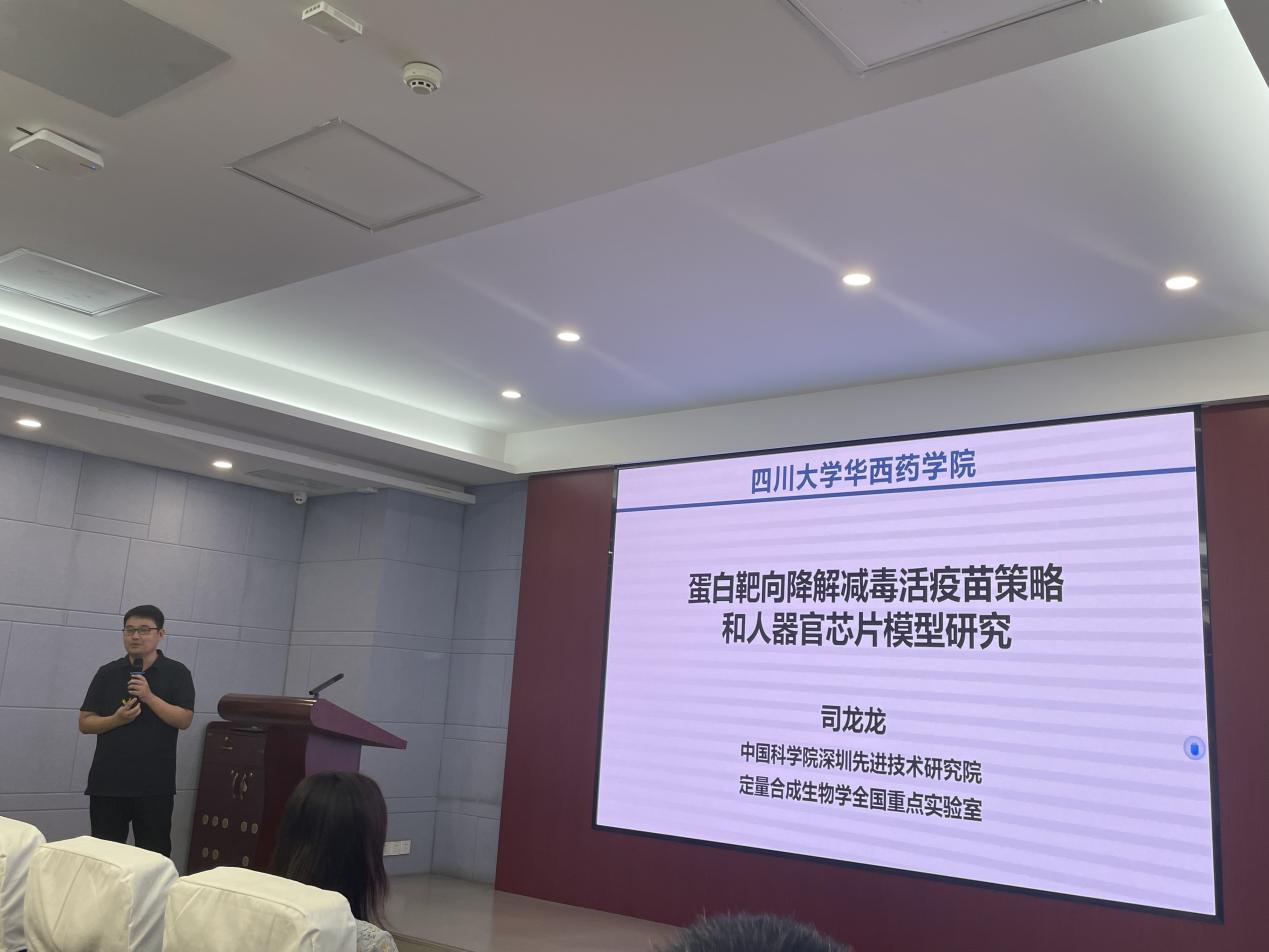 2025年10月10日,中国科学院深圳先进技术研究院研究员、华西药学院2008级校友司龙龙应邀访问我院,并在康弘学术报告厅作题为《蛋白靶向降解减毒活疫苗策略和人器官芯片模型研究》的学术报告。报告由我院生物技术药物学系郑永祥副教授主持,学院师生代表近百人参与活动,现场学术氛围浓厚。