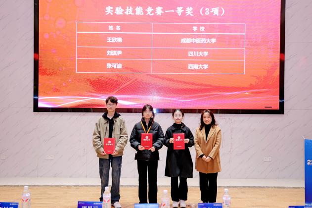 赛前,华西药学省级实验教学示范中心在学院的领导下精心组织、择优选拔,悉心指导。我院2022级药学专业刘淇尹、田庭辰和刘昭三位同学组成实验技能竞赛备赛团队。该赛道分为实验理论和实验技能考核两部分,最终药学专业拔尖班刘淇尹同学荣获实验技能竞赛一等奖(本届竞赛的最高级别奖项,指导教师:齐庆蓉、陈小瑞、刘秀秀),田庭辰同学荣获二等奖(指导教师:尹红梅、李曼、郑永祥)。