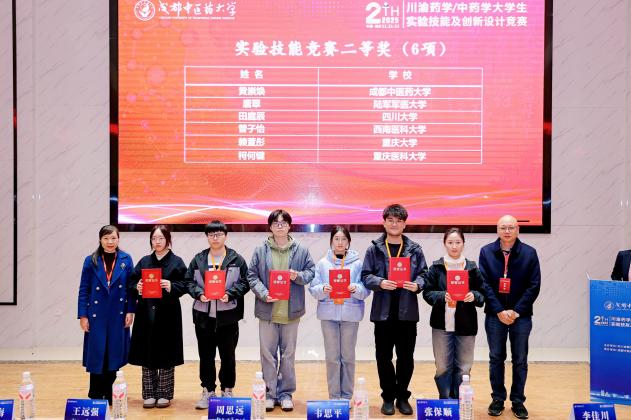 2025年11月21日-22日,由四川省教育厅主办,成都中医药大学、西南大学共同承办的第二届“川渝药学/中药学大学生实验技能及创新设计竞赛”在四川省成都市举行。此次竞赛得到川渝地区各医药院校的积极响应,共有包括四川大学、成都中医药大学、重庆大学、西南大学、陆军军医大学、西南医科大学等在内的14所高校130余名师生参与。此次竞赛由我院现代药学专业教学中心实验室常务副主任尹红梅、药物化学系副教授齐庆蓉两位老师带队参赛。