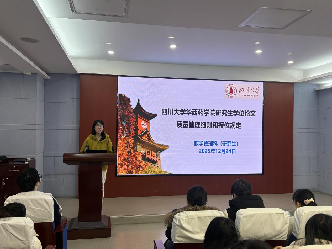 为切实保障2026届研究生顺利毕业、高质量就业,12月24日上午,学院在康弘报告厅组织召开专题讲座,就就业形势、安全管理与学位论文质量、答辩安排等内容进行集中宣讲与布置。学院党委副书记兼纪委书记章程、教学管理科相关负责老师出席会议,2026届全体毕业研究生参会。