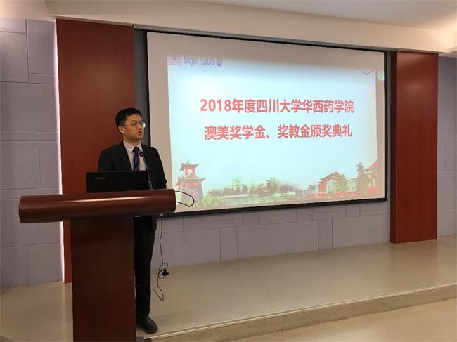 随后,马海峰先生宣读了《2018年度四川大学华西药学院澳美奖学金、奖教金奖励决定》,澳美制药的嘉宾和学院老师一同为获奖的学生和教师颁发了荣誉证书。