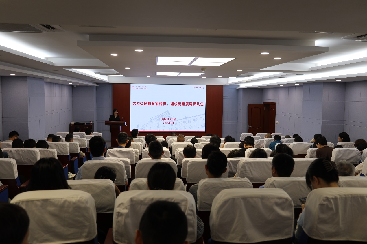 马涛副部长以“传承教育家精神,锻造新时代育人先锋”为题,从深入学习贯彻习近平总书记重要指示精神、大力弘扬教育家精神、师德师风建设面临新形势新挑战、党委教师工作部工作四个方面,通过典型案例深度解析新时代师德师风建设的内涵要求。