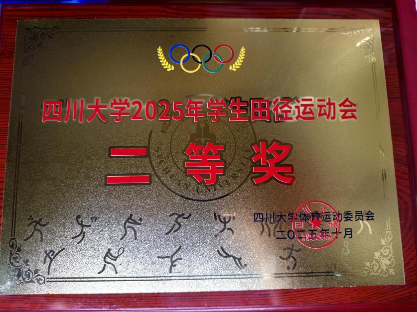 在田径项目中,2024级徐垚同学荣获女子垒球冠军,并打破校记录,2002级校友杨慧获得“乐跑回家”校友组女子第一名,2025级郭姝淇同学荣获女子跳高亚军,2025级莫坤宇同学荣获男子100米亚军、男子200米季军。学院在女子铅球、男子800米、男子1500米、垒球、女子1500米项目、女子4*100米、男子4*100米、女子异程接力、混合跳和女子仰卧起坐等团体比赛也获得佳绩,最终荣获四川大学2025年学生田径运动会二等奖。