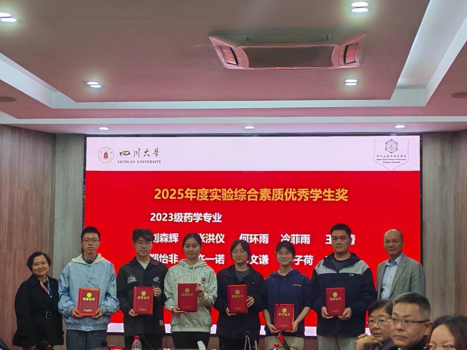 学院党委书记范瑾宣读《四川大学华西药学院2025年度“红叶实验奖学奖教金”奖励决定》。院长秦勇代表学院感谢高永忠校友夫妇的慷慨捐赠与深情厚谊,勉励全院师生以榜样为引领,深耕药学研究,勇攀学科高峰。