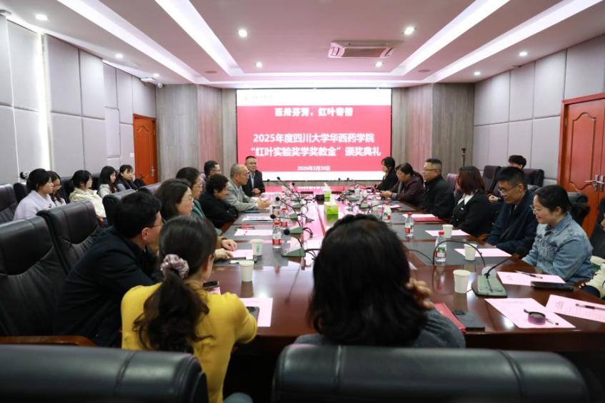 2026年3月30日,2025年度“红叶实验奖学奖教金”颁奖仪式在药学科教大楼科瑞德会议室顺利举行。捐赠人高永忠校友夫妇、学校教育基金会、全体院领导、相关部门负责人、全体获奖人员参加,院党委副书记兼纪委书记章程主持。