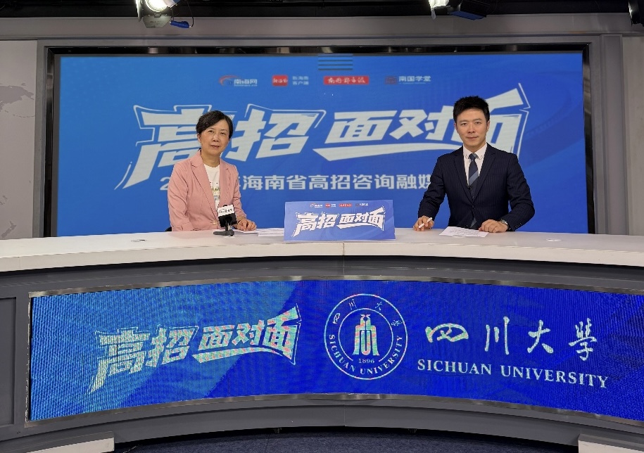 4月9日至11日,招生宣传工作组应海南日报社南海网之邀参加2026年海南“高招面对面”系列活动。周乃彤副教授和陆璐老师参加了线上高招政策直播宣讲会以及在海南省农垦中学举办的2026年海南“高招面对面”公益活动(海口站)。通过直播以及线下咨询的方式,对四川大学的办学特点,优势学科以及在海南的招生政策进行了宣讲,解答了考生和家长的疑问与困惑。